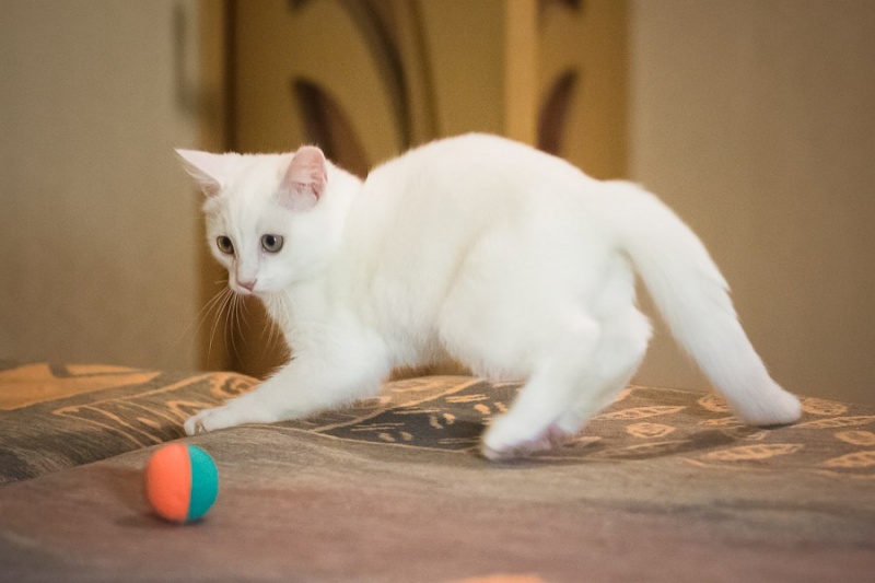 Приучен к лотку с наполнителем, кушает сухой корм супер премиум класса.