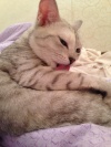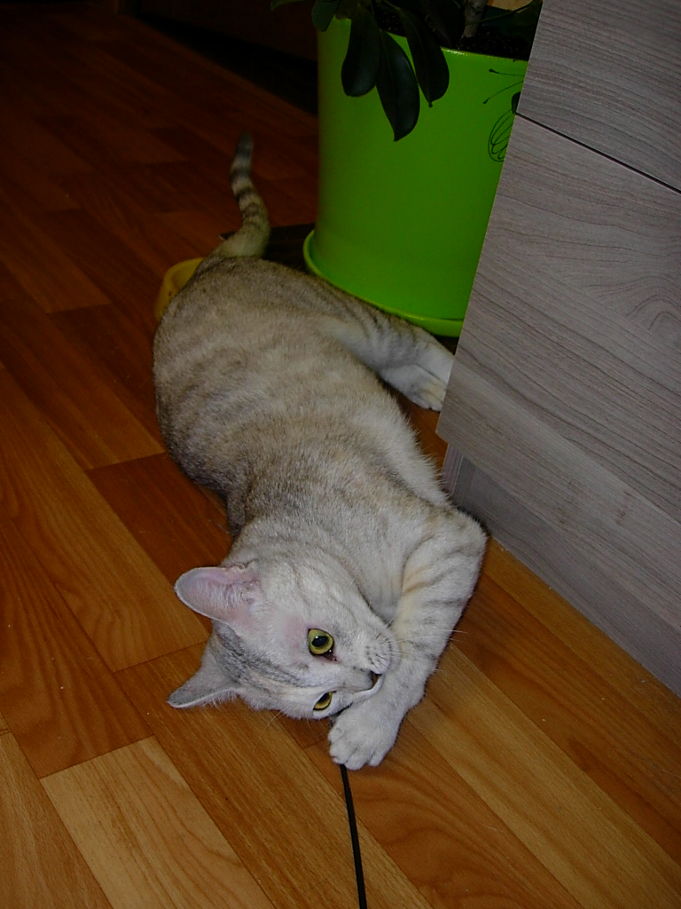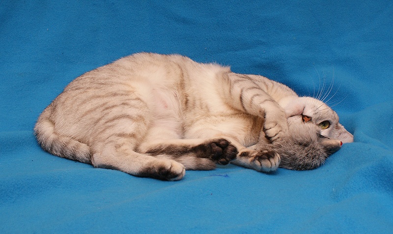 Она знает, что она красивая, всячески это подчеркивает, то хвостиком вильнет заигрывающе, то глазками ведет в сторону, то ляжет изящно, вытянув лапки.)