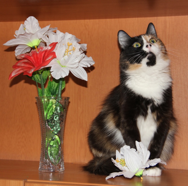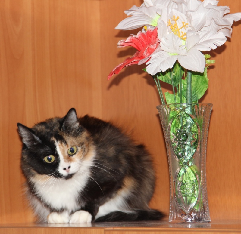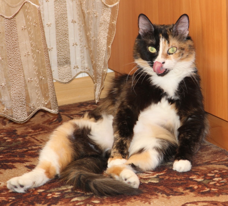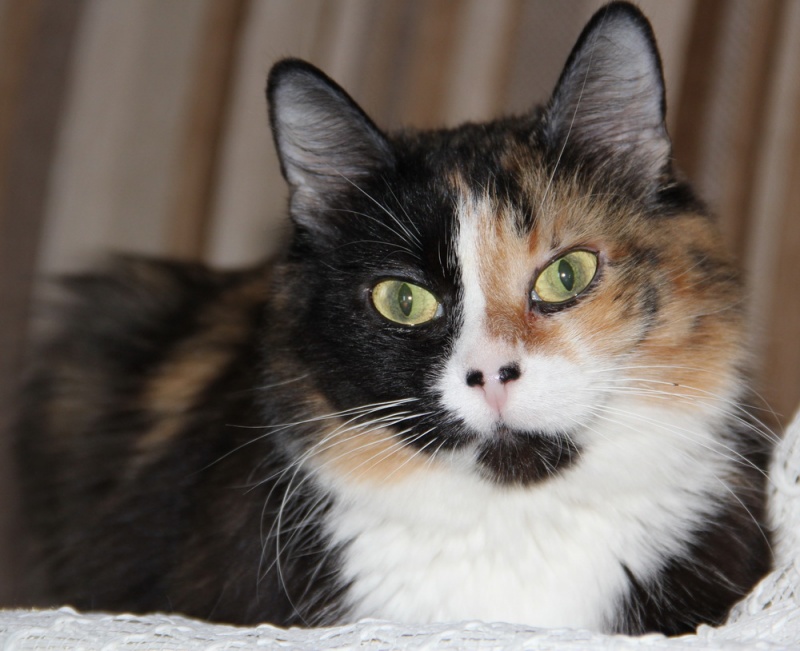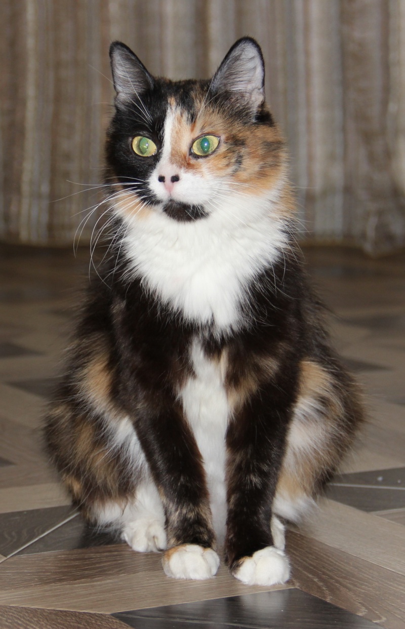 Всё при ней: шикарная трёхцветная шубка, огромные глаза, аккуратные ушки, пушистый хвостик.