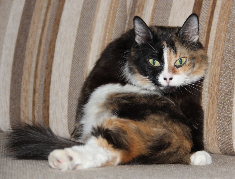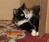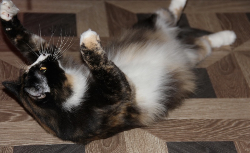 Ей около 3 лет. Стерилизована, ходит строго в лоточек, освоила искусство пользования когтеточкой.