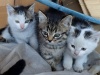 в марте на даче приблудилась кошка, истошно кричащая и голодная, мы с соседями люди НЕравнодушные - кормили. Сегодня, она показала нам своих котят. Месяца полтора. НЕагрессивные. Сообразительные - за день, на глазах, научились есть с мамой из тарелки..