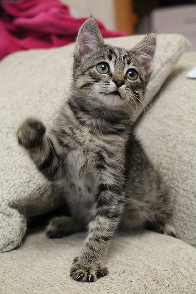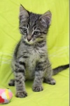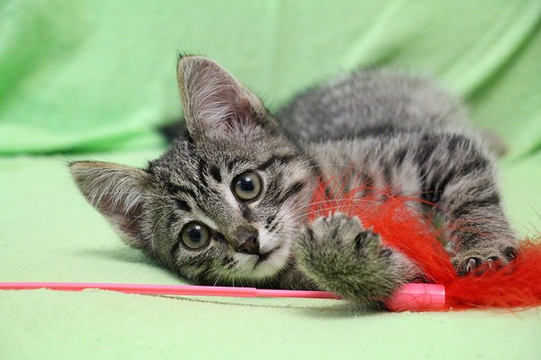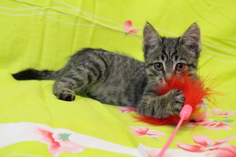 Малышу Дэнни примерное 2,5 месяца. Лоточек сразу освоил, кушает сушку с радостью. Очень веселый, игривый, безумно ласковый ребенок. Сегодня первый день его прибывания в нашем санатории и он пытался поиграть со всеми котами и со всеми игрушками за раз.