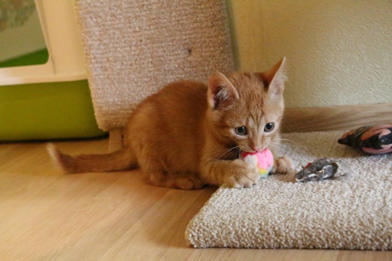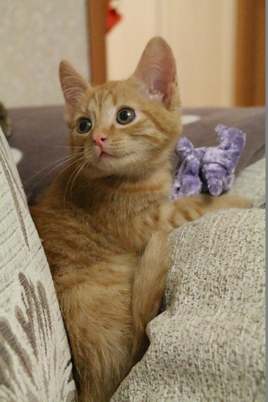 Рыжик очень яркий, розовоносый забияка. Возраст примерно 2.5 мес. Очень активный, забавный и игривый.