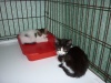 Кошке Маркизе около года, котятам третий месяц. Из котят две девочки - Милка и Буся и один мальчик - Барсик.