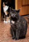 На руки не лезет и в целом ненавязчива, но очень отзывчива на ласку, с удовольствием подставляет почесать пузо. Встречает-провожает. За играми замечена не была, гонками по квартире не увлекается, в постель не лезет, но по столам ходит, любит высокие места. Горшок без проблем, приучена к сушке и когтеточке. Стерилизована.