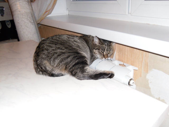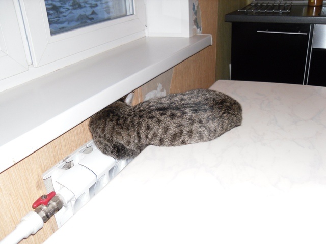 На новогодних праздниках, она решила сделать себе запасы - открыла пакет с мандаринами и три штуки закатила в один угол за панелями - тайничок. Вот такая затейница!!!