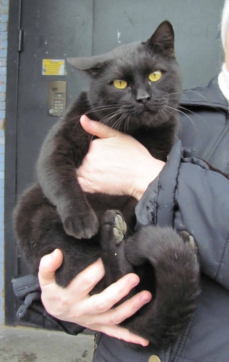 Роскошный черный кот еще летом прибился к подвалу. Хотелось бы найти ему хозяина. Подвал не лучшее место для кота - поскольку доступ в подвал в морозы могут перекрыть да и прочих опасностей полно - например, грызуны, поевшие отравленных приманок. Кот крупный, очень ласковый и спокойный - нормально контактирует с собаками, которых выгуливают в том районе (так что наверное можно в семью с собаками).