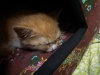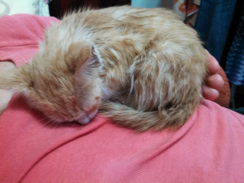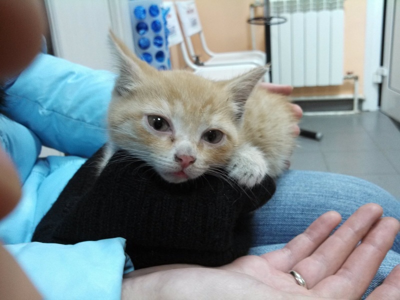 Найден котенок, беспородный, девочка, окрас рыжая с белым, глазки оранжевые.