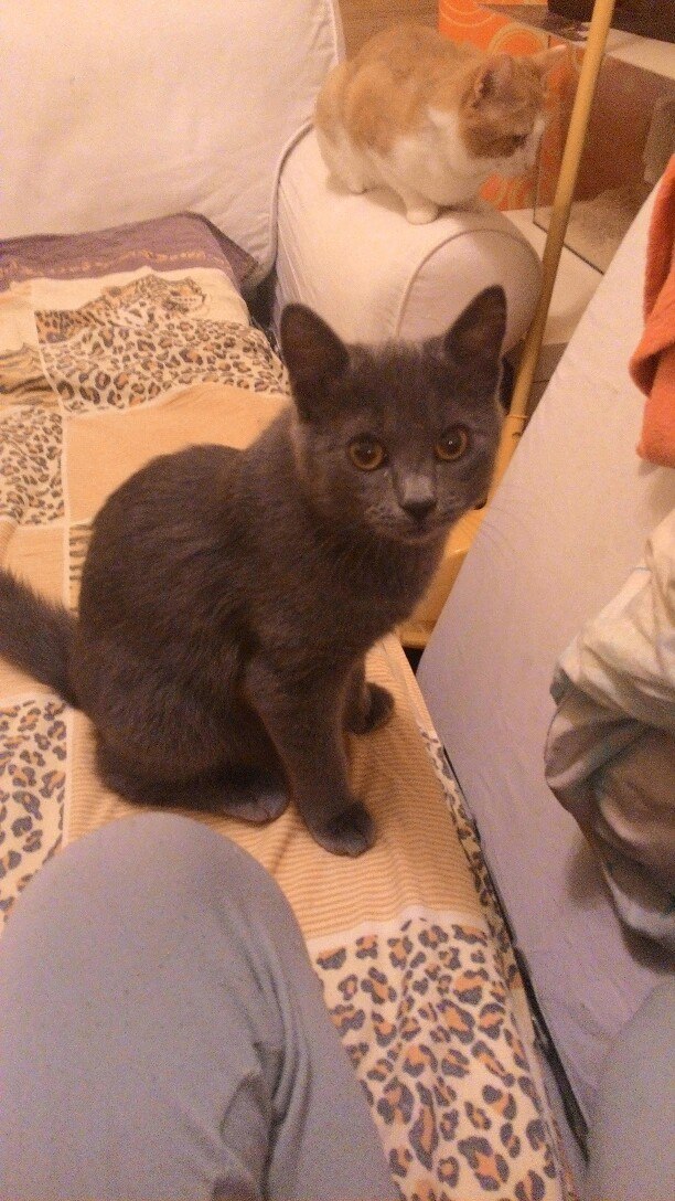 Отдам очень мягкого и шелковистого дымчатого котенка. Возраст - месяцев 5. Месяц назад был снят с дерева, хотели оставить себе, но не ужился с взрослым котом. С котиком отдам 2 пластиковые миски, шлейку, ветпаспорт, корма на 3 дня.