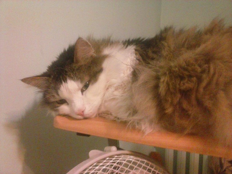 Подобран в 2010 году, предположительно возраст 4,5-5 лет. Был подобран в подъезде после заселения в квартиры новых жильцов. Стерилизован. Окрас белый+серый+коричневый. Кот небольшой, но очень шерстяной.