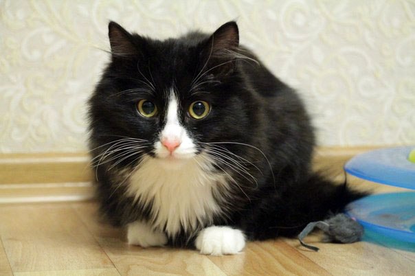 Это красавица Марго. Обладательница выразительного классического биколорного окраса и роскошной пушистой шубки.)