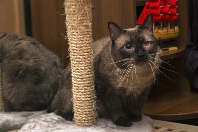 Нельсон ласковый и общительный котик - фенотипичный таец окраса сил-пойнт, возрастом 2-3 года. Свое легендарное имя он получил благодаря особенности – один глазик у Нельсона от рождения не развит, что ничуть ему не мешает в жизни. И конечно же не лишает его права быть счастливым и любимым. Этот кот будет самым ласковым и преданным другом, в силу породных особенностей привязывается к человеку, а не к месту. Нельсон кастрирован, поставлены все необходимые прививки. Отлично знает лоток. Спешите взять в дом роскошного и необычного друга. Наталья 8 913 726 89 80, Ольга 8 913 383 64 83