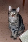 Ему около 9 месяцев. Кастрирован. Хорошо воспитан – лоточек знает на «5+», пользуется когтеточкой. Умный и ласковый котейка.