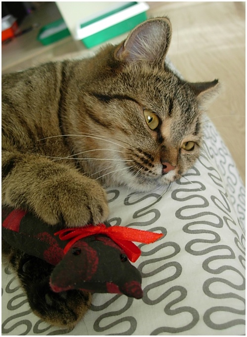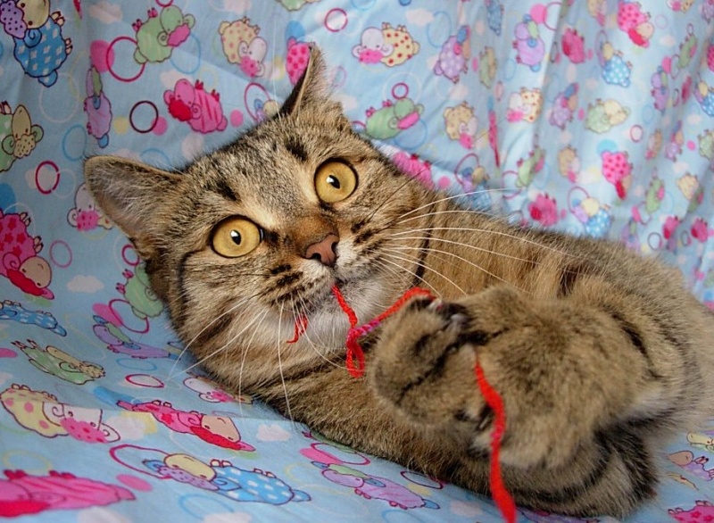 Тришка любит забраться под одеяло и оставаться там, в тепле и безопасности, незаметным, робко мурчащим комочком... Но с радостью и удовольствием будет активно играть в любую предложенную игру!..