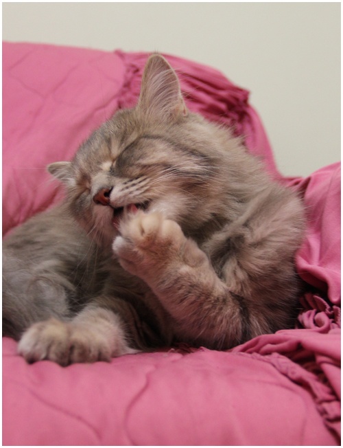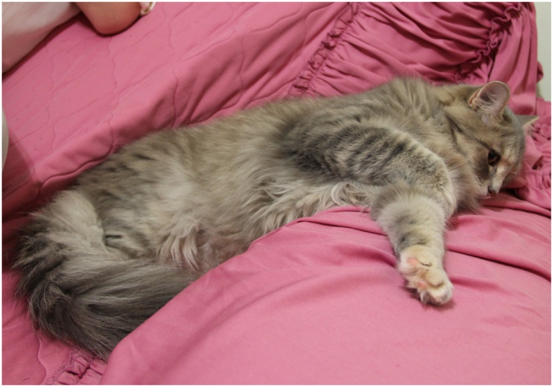 Ей нравится сидеть рядом, играть с дразнилкой, лежать на у кого-то на коленках или на спине - ей просто важно быть рядом с человеком!