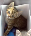 На прошедших выходных их с братом обнаружили жители микрорайона "Чистая Слобода" в Ленинском районе на 9-м этаже многоквартирного дома. её серый братик в тот же день уехал домой. Котята были чистенькие, видно что домашние, даже животики были кругленькие, как будто их впрок накормили, прежде чем выставить за дверь.(