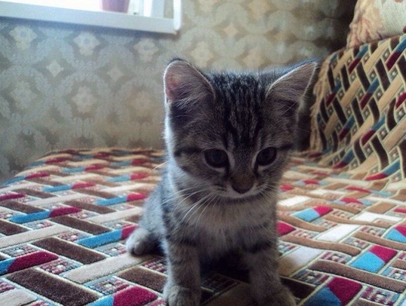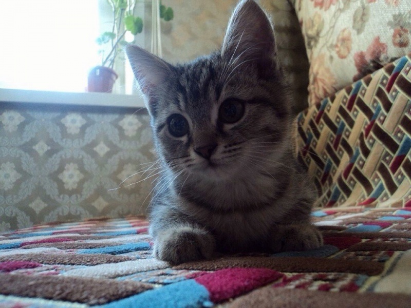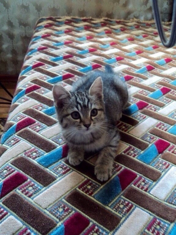 Малышке около 2-х месяцев, это безумно активный и ласковый ребенок. При виде любого человека начинает мурчать без остановки, с частотой 26 мурлыков в секунду. Игрушки, бантики и любые висящие в доме предметы опознает на отлично и будет рада каждый вечер вовлекать вас с собой в игру. С другими животными ведет себя дружелюбно и очарует даже самого вредного пса. Не смотря на свой юный возраст, лоток найдет без проблем. Кушает сухой корм, и даже готова делиться им с другими кошками.