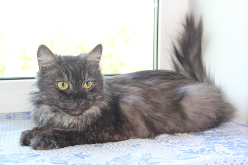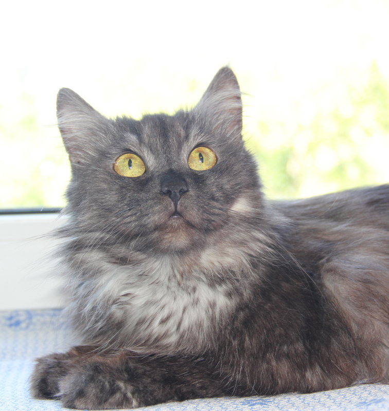 Кошка Машенька, 2 года, стерилизована, здорова, идеально воспитана. Шубка редчайшего окраса "чёрный дым", кошка крупная, очень ласковая и спокойная. Честно скажу, много кошек на своём веку повидала, но такую красавицу вижу первый раз.