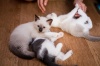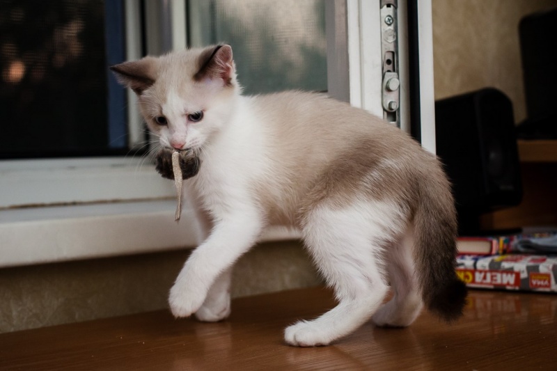 На первом фото - мама малышей. Бело-серенькая - это мамочкина дочка, светленькие - мальчишки-шалунишки.