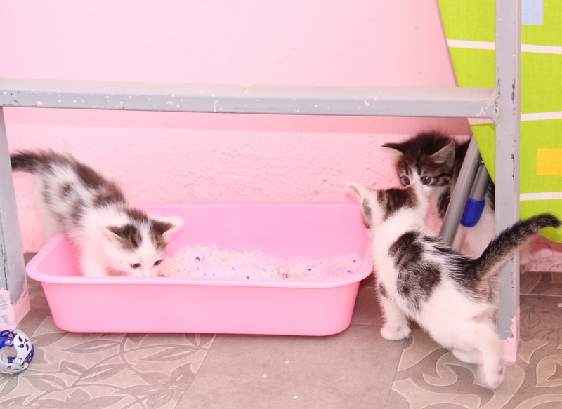 Сразу начали кушать паштетик для котят, начинаем приучать их к сухому корму. На удивление и к нашей гордости тут же дружным строем пошли по всем делам в лоток.