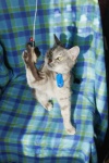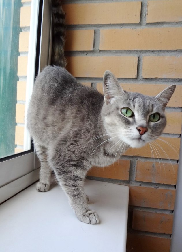 Жаннет - вальяжная красотка окраса "серебристый табби", с невероятно большими зеленющими глазами. Жаннет скромна и ненавязчива, но если вы к ней потянетесь, тут же отзовется ласковым "мррр": она может часами тарахтеть на коленках. Скоро осень и нам всем понадобится тепло и любовь, только представьте, как уютно будет сидеть в кресле с книгой и с такой кошкой на руках и слушать шорох дождя за окном. Уют - это просто, возьмите кошку