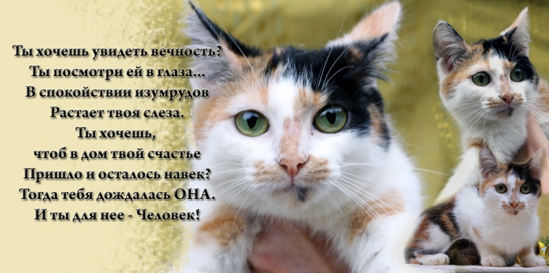 Марочка робкая и худенькая девочка, очень красивая, с обалденными зеленными глазами и счастливым окрасом. Любит помурчать о своем кошачьем. Отдается с условием обязательной стерилизации (помощь в стерилизации).
