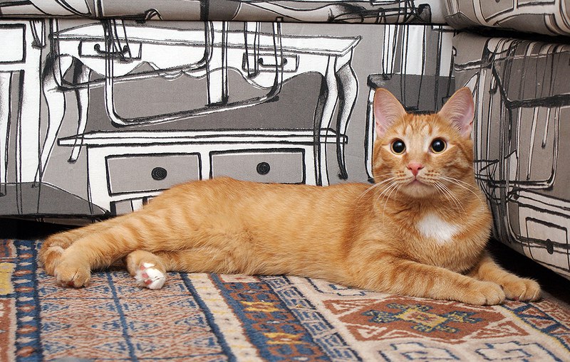 Кушает профкорм РК, лоточек с наполнителем на 5 +, имеет прививки и ветпаспорт.
