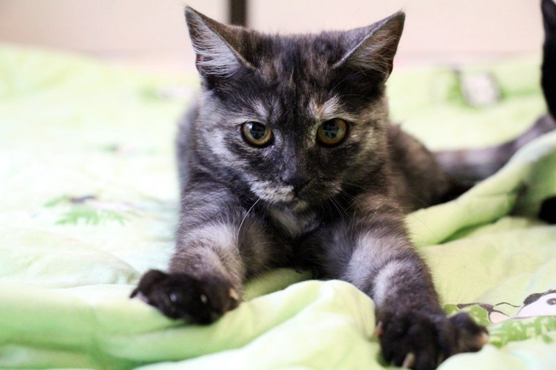 Возраст малышки около 4 мес. Обожает играть игрушками, очень задорная, активная, маленькая попрыгушка. Не прочь посидеть на ручках, сладко потягивая лапочками. Любит, когда ее гладят, чешут за ушком, за это будет благодарно петь свои кошачьи песенки.