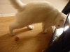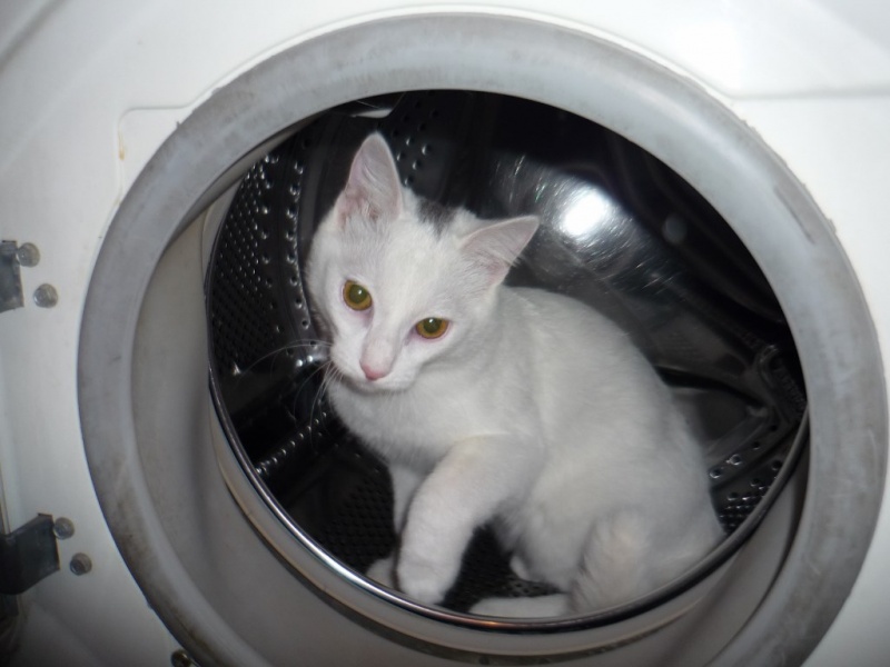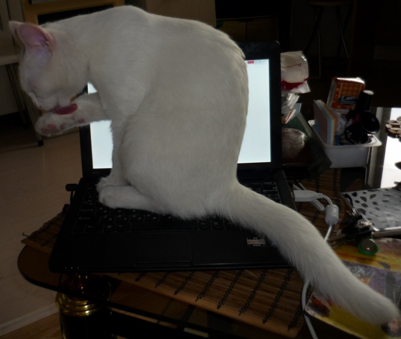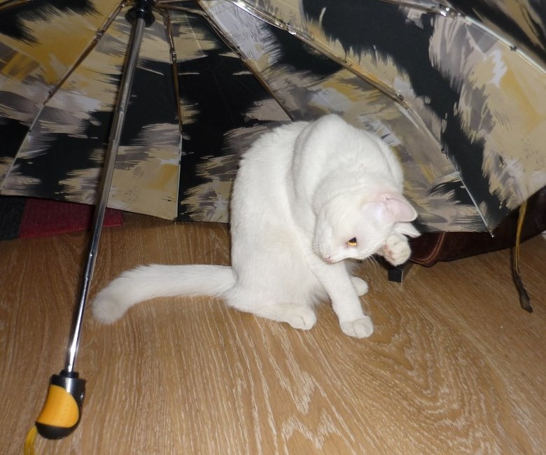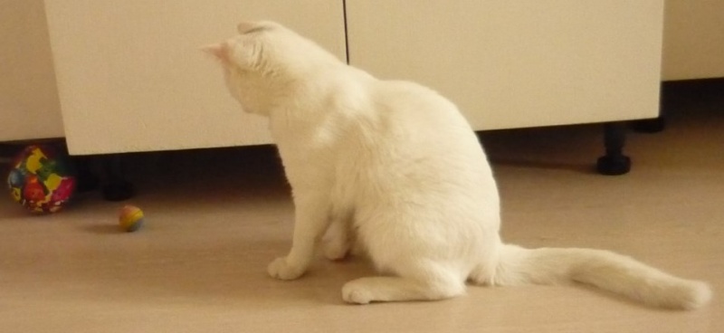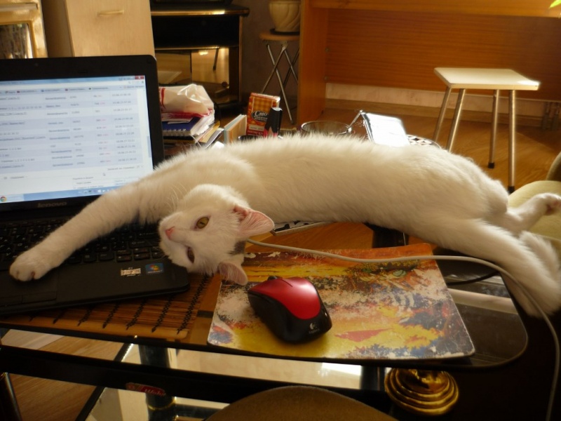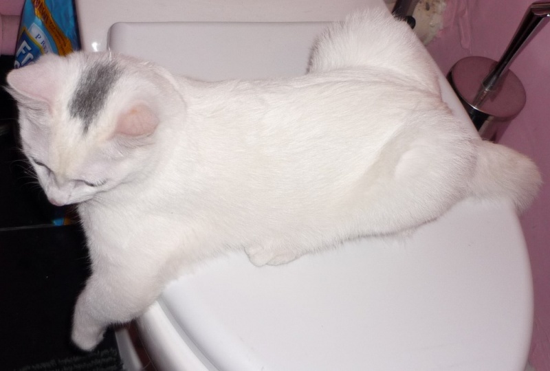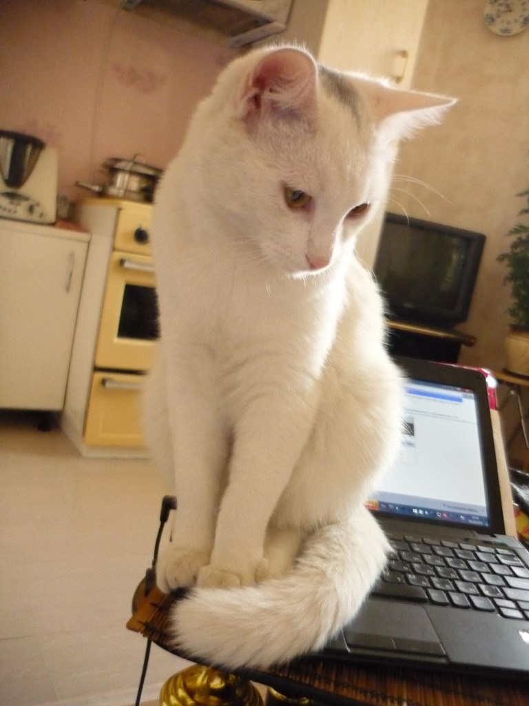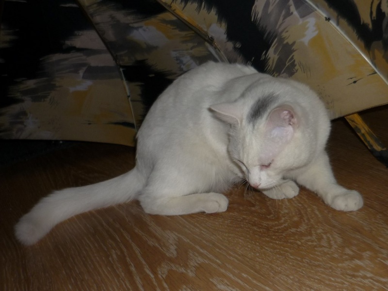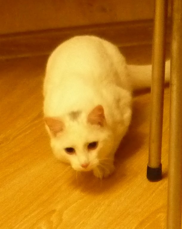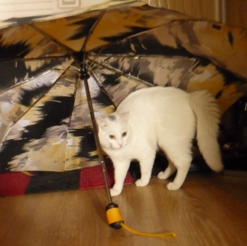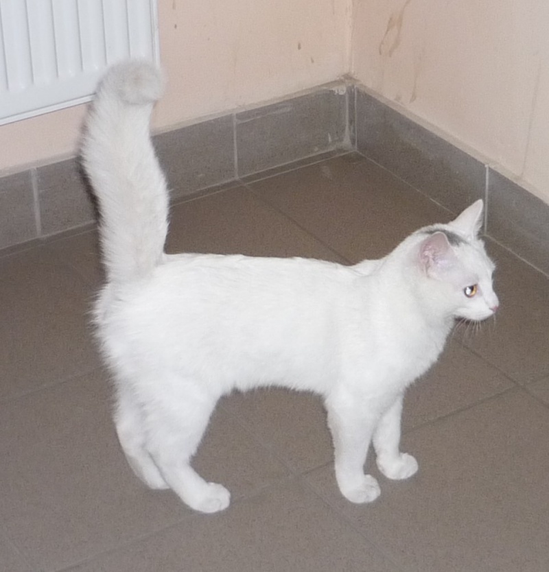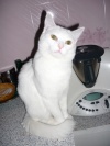 . Обещает ещё подрасти в ширину.Ослепительно белый, с золотыми глазками, иногда меняющими цвет на изумрудно-зелёный и меточкой на голове.