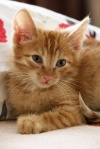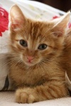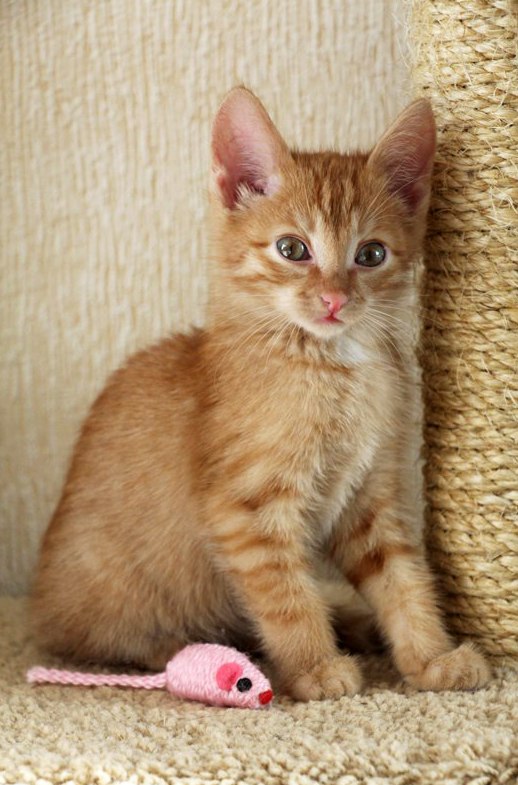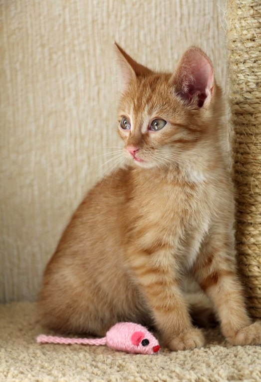 Такой маленький и уже благодарный, он все делает со смыслом, упорством и старательностью, если кушает , то до последней крошечки, если умывается, то от самых ушек до кончика хвоста. Сразу пошел в лоточек по важным делишкам, всем видом показывая - "ты это видела? я молодец!" . Научился играть игрушками, раньше и не видел ни мышек, ни мячиков, легко втягивается в беготню с другой малышней.