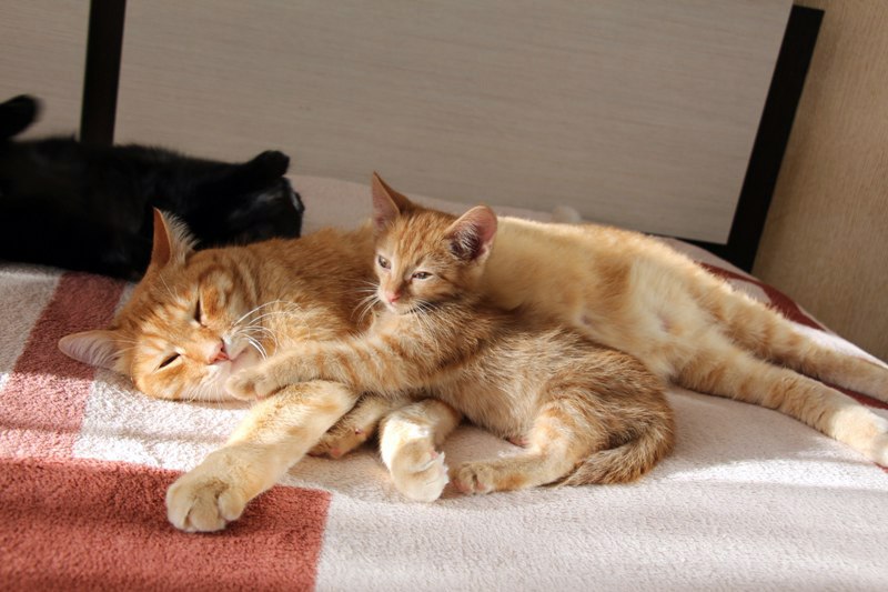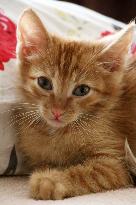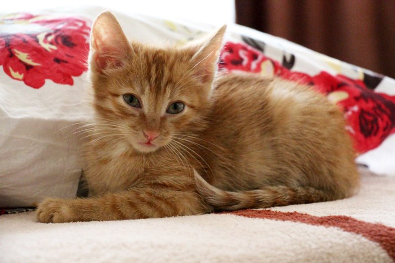 В прошлом маленький бомжик и беспризорник, с грязными ушками и усыпанный блохами, наконец- то был забран в теплый и уютный дом, где накормили, помыли, пригрели, а старшие кошки усыновили, успокоили.