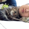 Сейчас Рысюшка здоровая, к лотку приученная, колтуны сбриты, поэтому не можем похвастаться пышной шёрсткой, но это временно.