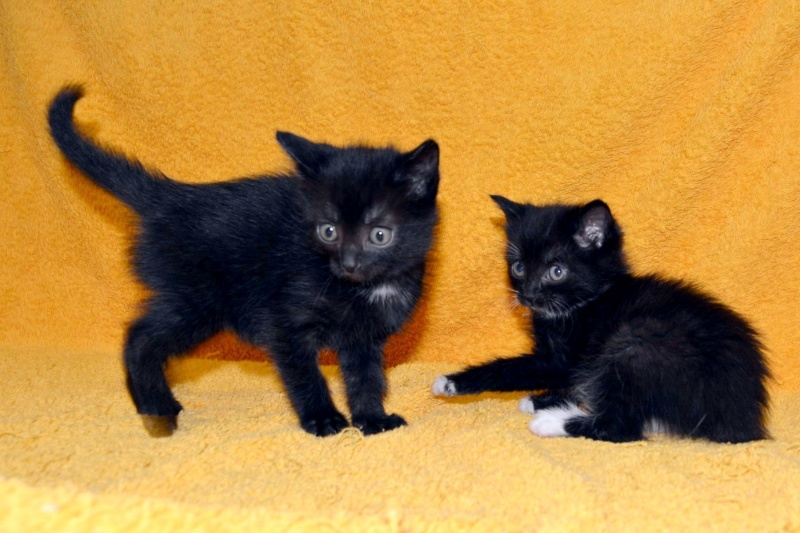Девочка и мальчик, совсем еще крошечные, возраст около 4-5 недель, кушают самостоятельно, ходят в лоточек. Котятки очень подвижные, озорные и игривые
