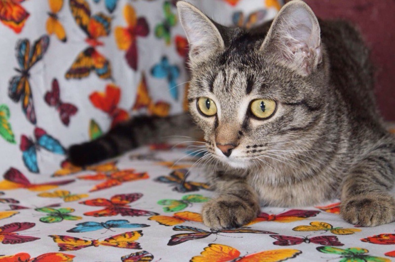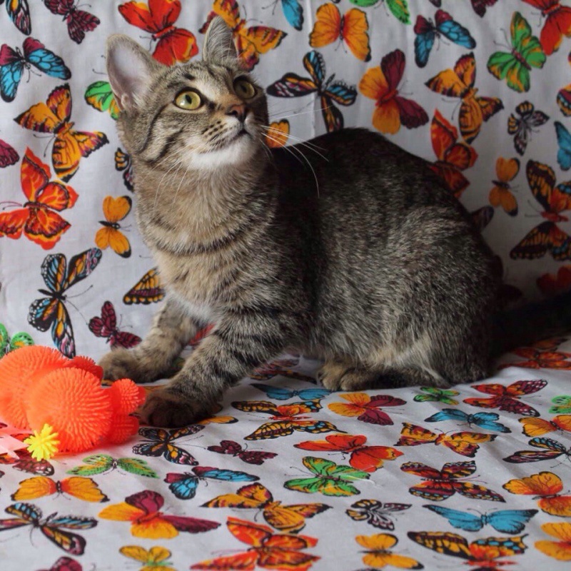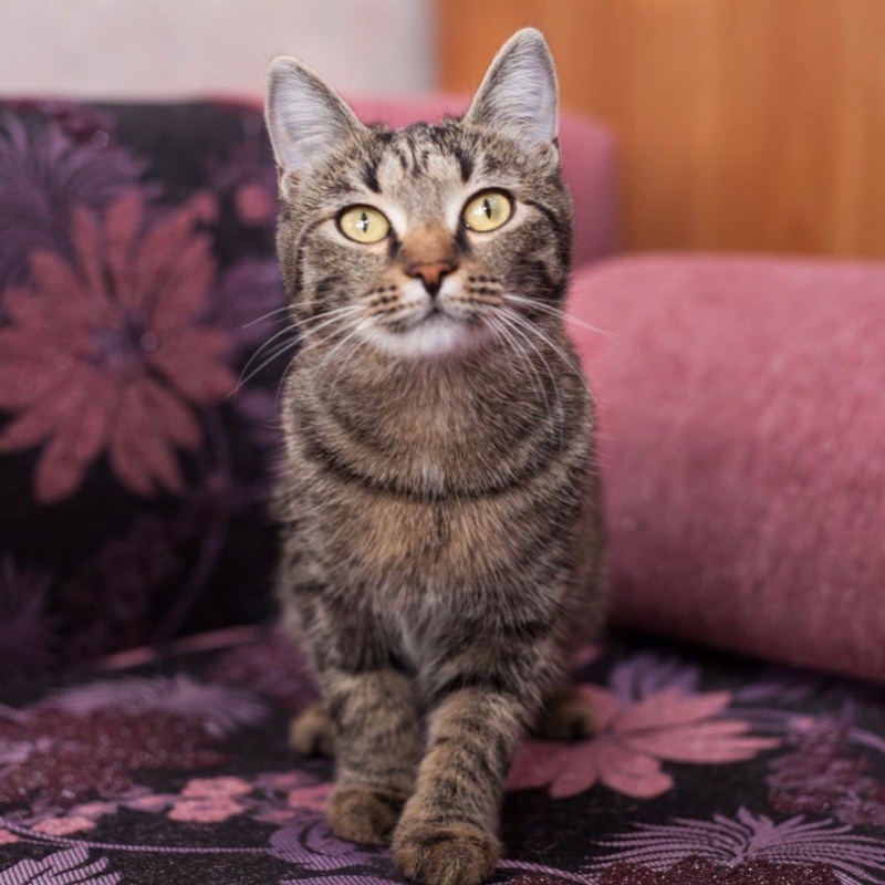 Малышка Даша (а она очень миниатюрная, размером с 5-ти месячного котенка) – невероятно милая, трогательная девочка. Ее большие теплые глаза, кажется, смотрят вам в самую душу, а шубка у нее классического полосатого окраса, того самого, к которому мы все привыкли с детства). Даше почти год, молоденькая. Очень ласковая девочка, обожает людей и сидеть на ручках. С животными не агрессивна, дружит со всеми.