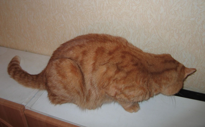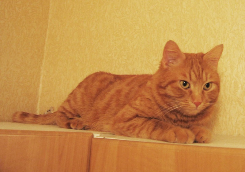 Темперамент горячий, размер компактный - для тигра, а так крупный рыжий кот. Возраст молодой, судя по виду и поведению. Ужасно человеколюбив. Понимает человеческую речь, обучен кошачьим премудростям. Игривый, подвижный, активный, но послушный. Беспроблемный. На вид и на ощупь как плюшевая игрушка. Кастрирован. (Найден в мороз на улице, явно чей-то домашний кот, но прежние хозяева не найдены). Туалет кота - два больших лотка без наполнителя с высокой решеткой.