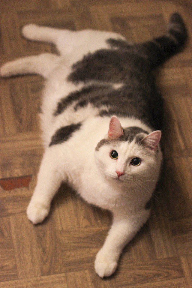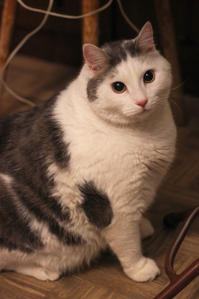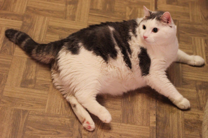 Забрали его из квартиры умершей бабушки. Бабушка его так любила, что раскормила до состояния ожирения.