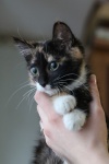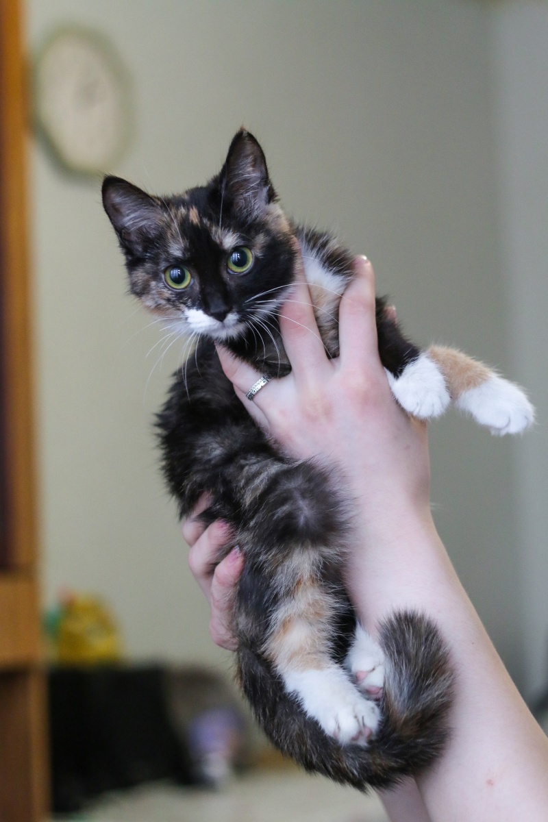 Потрясающе красивая, ласковая и нежная девочка. Фотографии не могут передать всего обаяния этой маленькой принцессы. Ей всего около трех месяцев, в связи со своим нелегким прошлым она еще немного пуглива, но стоит взять ее на руки - как она моментально оттаивает и мурчит без остановки. Как и любой ребенок - имеет очень активный и игривый нрав, всегда рада побегать за мячиком и поиграть с мышкой. Уже привита, на отлично освоила лоточек, кушает сухой корм.