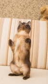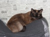 Таисия стерилизована, поставлены все прививки, получен паспорт. Отлично знает лоток, кушает сухой корм Раял Канин для сиамских пород. Когтеточкой владеет в совершенстве.