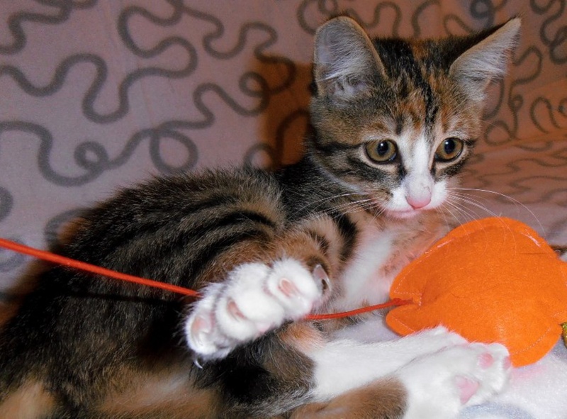 Маленькая Василиса – жизнерадостная, яркая, игривая, ласковая и любопытная котодевочка. Она любит охотиться за всем, что движется, в ход для игр идет всё и вся – бантики, мячики, фантики и собственный хвостик. Котенька отлично ладит с собратьями, очень любит спать под бочком взрослых.