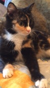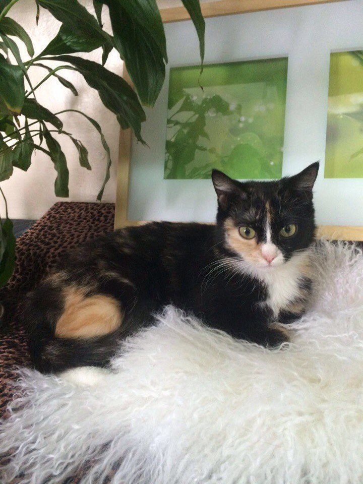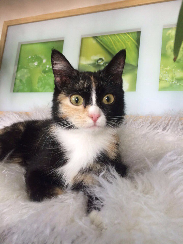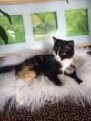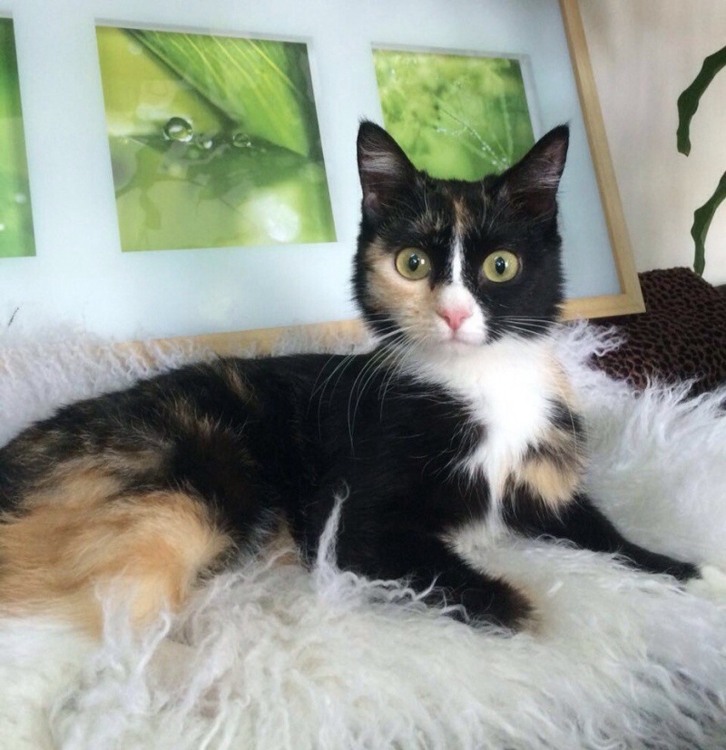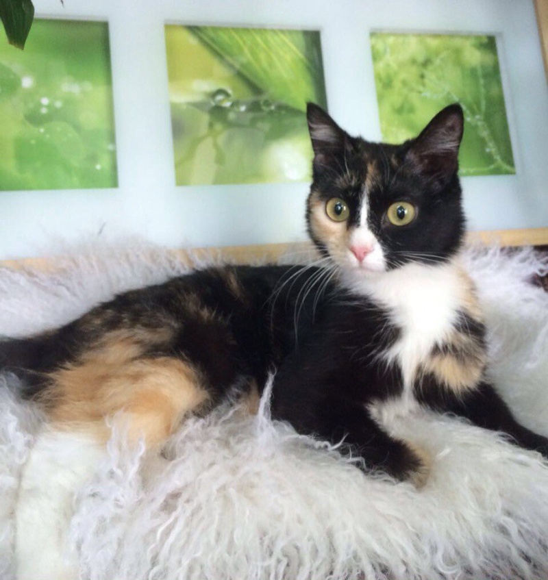 Невероятно красивая глазастая трехцветная барышня с ласковым и нежным характером по отношению к людям. Любит внимание и ласку и всегда отвечает взаимностью. Навязчивостью при этом не отличается. Молоденькая, возраст ок. 6-7 мес., здорова, стерилизована. Есть особенность: кошка, как воспитанная собака, приучена к выгулу. То есть в туалет она ходит на улицу, но в доме не гадит, терпит и дает понять хозяину, что ей нужно "по делам".