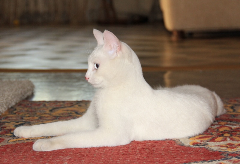 Белинский - кот культурный, воспитанный и очень деликатный. Он не станет вам докучать, но как только вы на него посмотрите или коснётесь рукой его красивой белой шубки, сразу замурчит, громко и благодарно. Котик очень спокойный, но как и все молодые коты, обожает поиграть, особенно любит побегать за лучиком от лазерной указки.