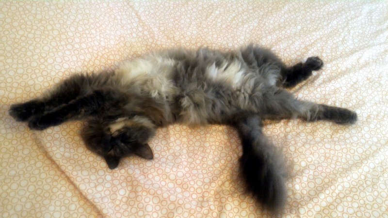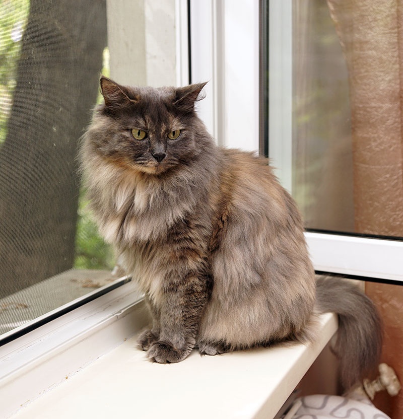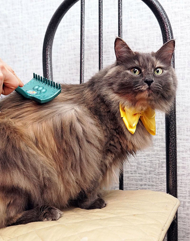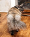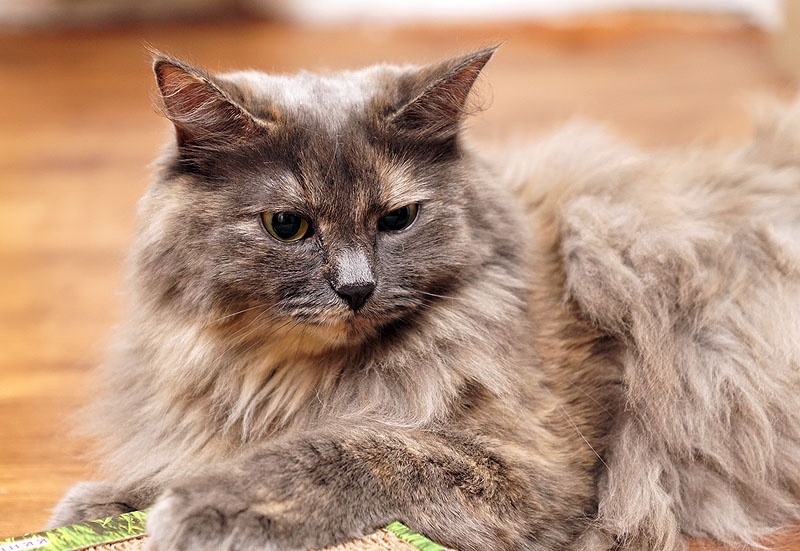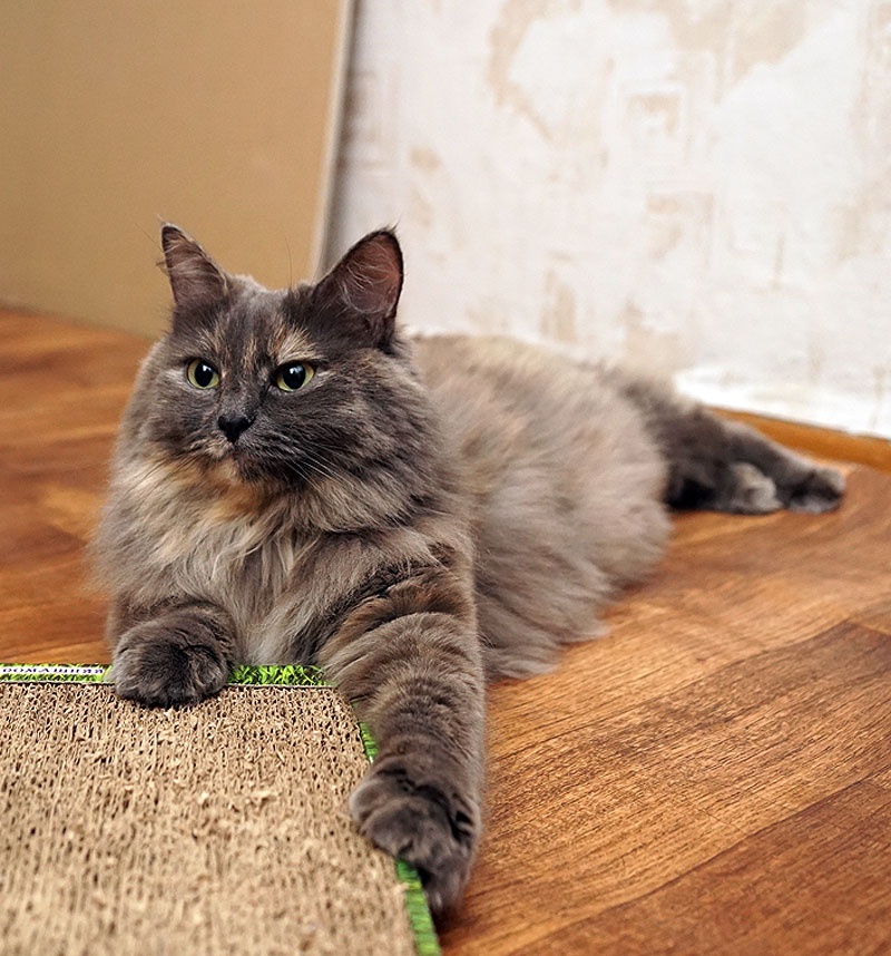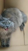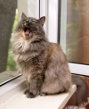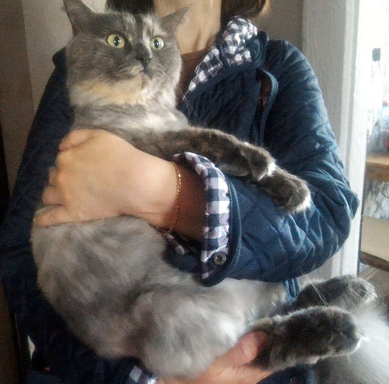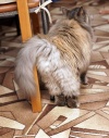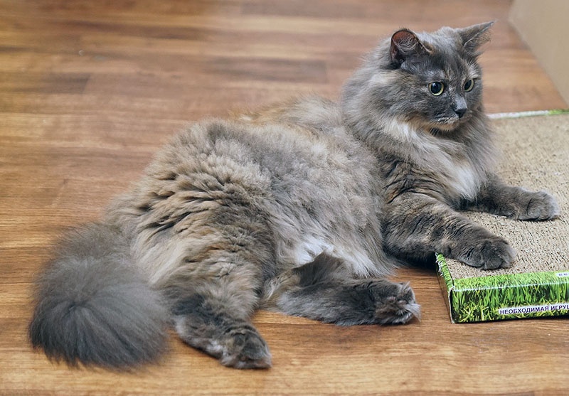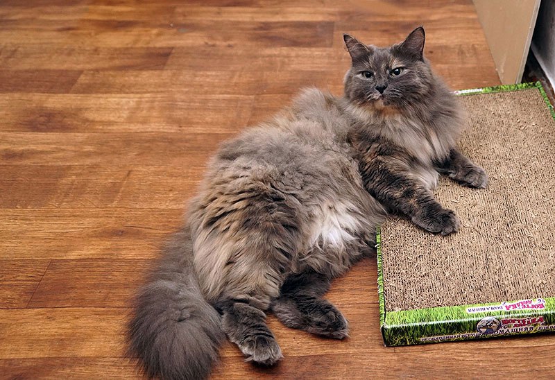 Голубокремовая шубка требует ухода, благо кошка обожает, когда занимаются ее внешностью. Хорошая, очень ласковая девочка.