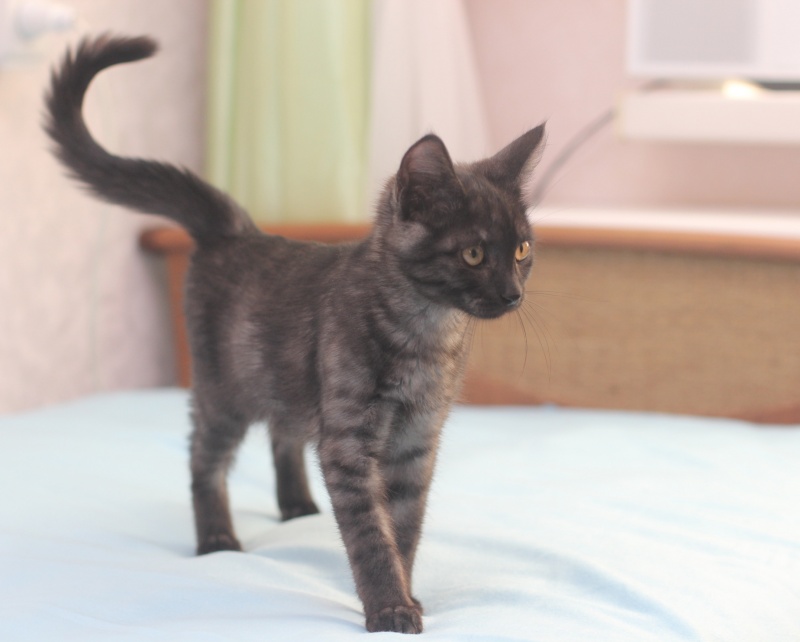Агатику около 4-х месяцев. Необычного шоколадного окраса, хорошо воспитан, добрый и ласковый котик. К лоточку приучен, поставлена прививка.