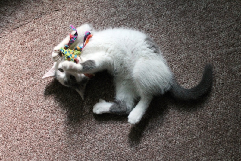 Малышу 3 месяца, но несмотря на столь юный возраст, он уже аккуратно ходит в лоточек, отлично кушает сухой корм и учится пользоваться когтеточкой.