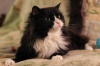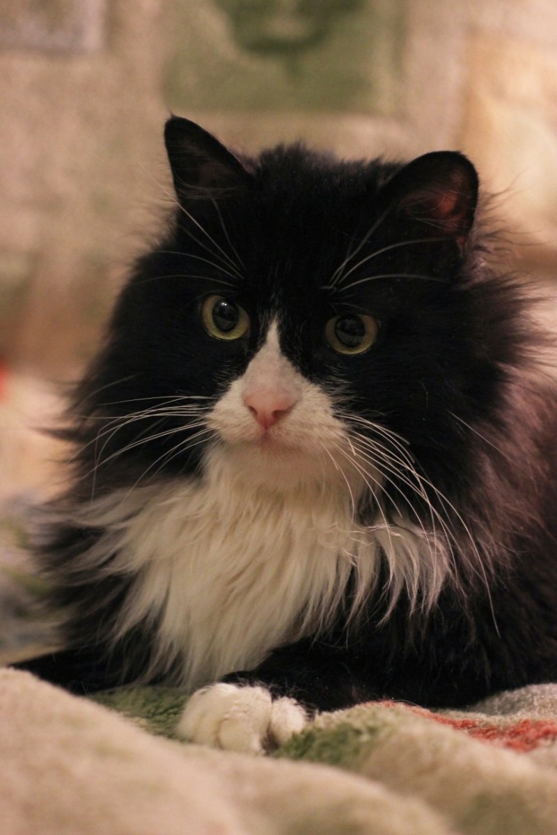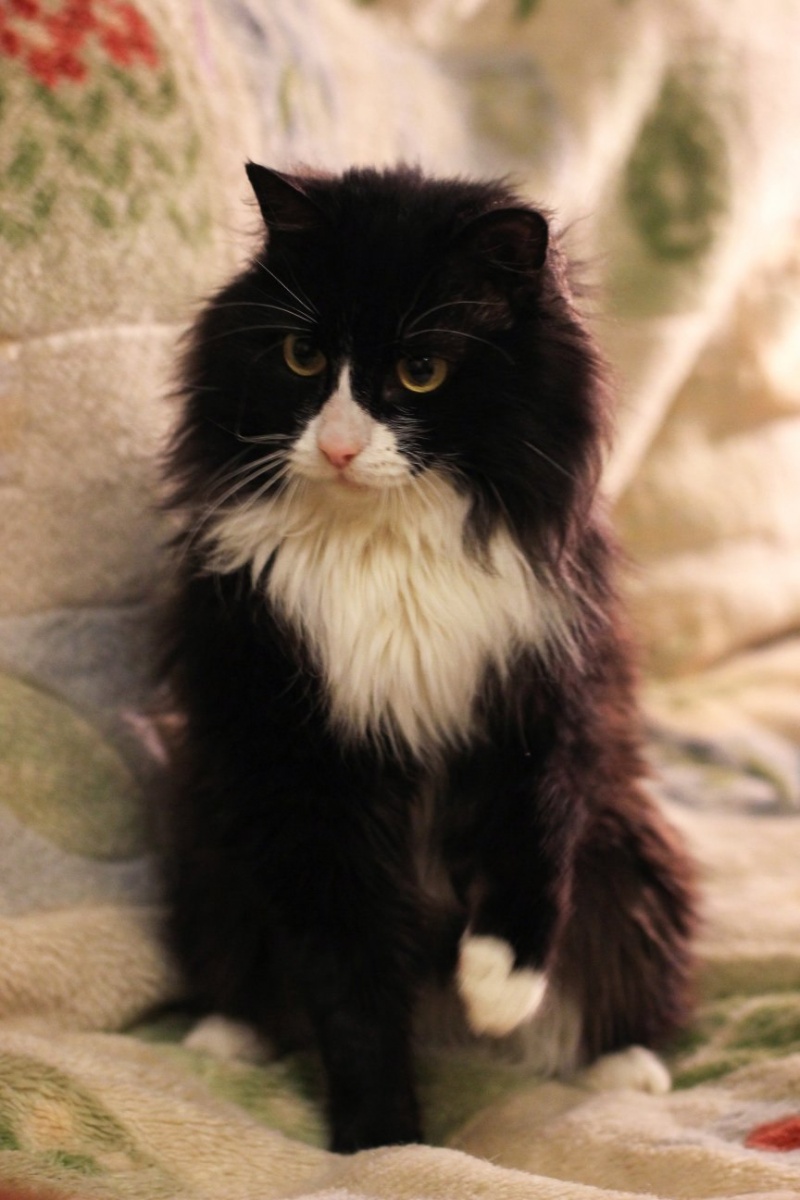 Присмотритесь к нему. В нем всё богатство мужественной кошачьей внешности – элегантный черный полушубок небрежно накинут поверх белой сорочки, образ дополняют шикарные усы и пронзительный взгляд. По характеру Марсик самодостаточен и независим, посиделкам на коленях и наглаживаниям предпочитает ненавязчивую дружбу. Человек при этом Марсику жизненно необходим, с кем еще обсудить, что вкусненького ждет его, Марсюшу, на ужин? Он вообще не прочь поговорить и высказать своё авторитетное муррр-мнение. Поиграть и побегать ему тоже в радость, погонять мячики по полу – словом, совершенно не скучный кот. С другими животными дружелюбен. Здоров, кастрирован, ест как сухой, так и влажный корм. С лотком справляется мастерски – никаких промахов. Возраст около 5 лет.