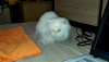 Эта фенотипичная персидская красавица была найдена на ул. Татьяны Снежиной в конце июля. Добрые люди пожалели эту милую кошечку и забрали с улицы. Она была голодная, длинная белая шерсть свалялась в колтуны. Стало известно, что она долго жила на дереве, пряталась на ветках и боялась спуститься к людям. В тот же вечер были развешаны объявления о найдёныше, но до сих пор никто не отозвался. Кошка оказалась воспитанной и, даже находясь в стрессе от пережитых потрясений, сразу пошла на лоток. В еде не прихотлива.