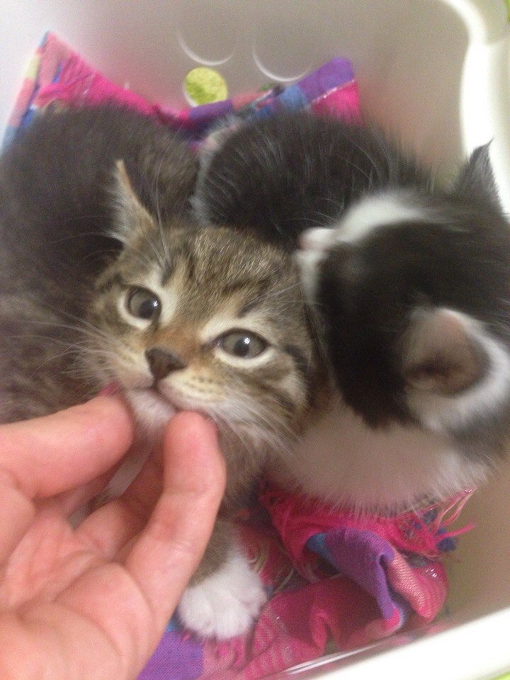 Девочкам около 2-х месяцев, весёлые, милые, ручные, ласковые. Жизнерадостные, активные, любят бегать за большим мячом. Мурлычут, когда их гладят. Девочки совсем крошки, но, не смотря на это, довольно смышленые, в лоток ходят безупречно. Кушают и влажный, сухой корм и натуральную еду.