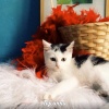 Беленькая с серыми с пятнышками очаровашка Бусинка. Очень игривая и подвижная, ласковая и контактная девчушка, любит забираться на плечо. Возраст ок. 2х мес.