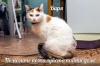 Валентинка – обладательница больших золотистых глаз и пёстрой плюшевой шубки. Киса взрослая, совершенно здоровая, не считая отсутствия почти всех зубов, которые пришлось удалить из-за болезни дёсен. Проблем ей это не доставляет, кушает влажный корм и даже сухой, но глотает его целиком. Обаятельная и харизматичная кошка.