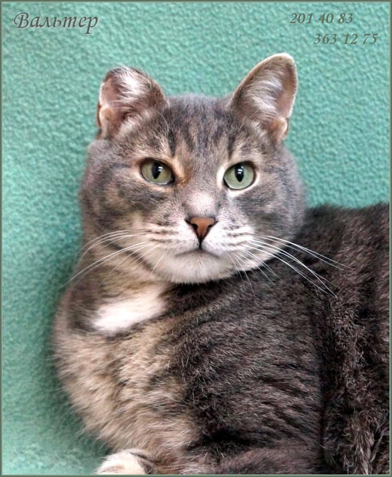 Кот с уникальным характером - очень добрый, душевный и общительный мальчик. Вальтер привит, приучен к лотку, хорошо уживается с другими животными, постоянно мурчит и разговаривает. Котику необходим профессиональный корм и контроль состояния здоровья, поэтому он ждет самого заботливого и ответственного хозяина, которому станет лучшим другом.